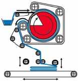 Bei Verwendung einer hochtourigen Waschmaschine oder einer Wäscheschleuder, kann durch den überaus großen Umschlingungswinkel von über 300° gegebenenfalls auf einen Trockner verzichtet werden. Die Wäsche wird durch die Mangel getrocknet, wodurch eine große Zeitersparnis zu erzielen ist. Hochleistungsgeräte mit Eingabesystem, Längsfaltung und Stapelung für 1 Personenbedienung lieferbar.